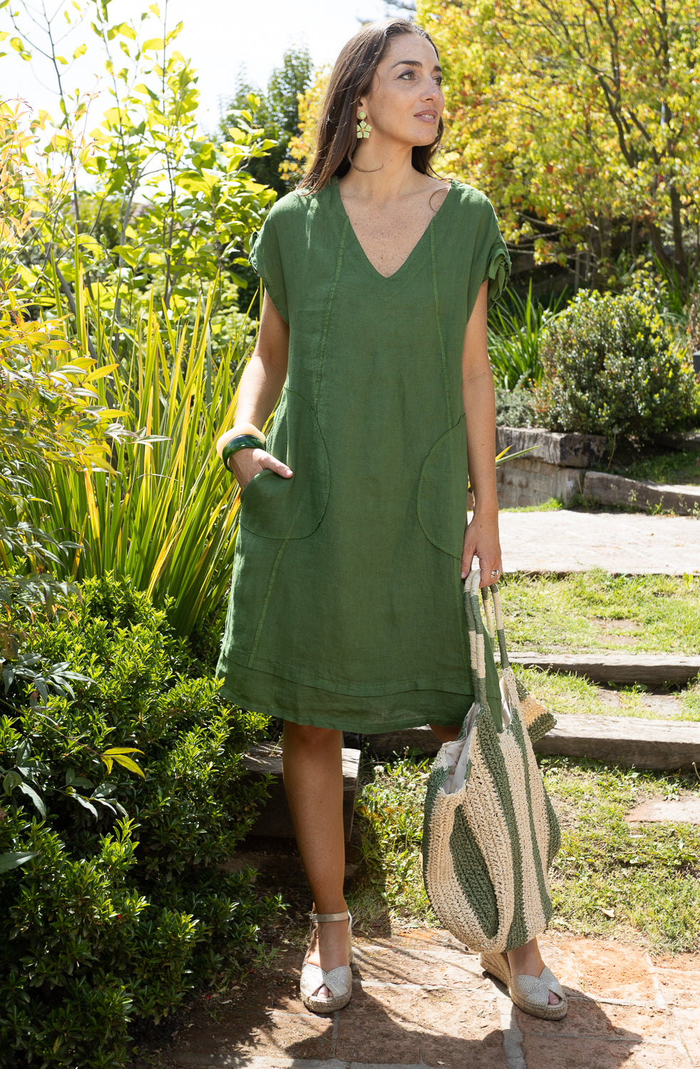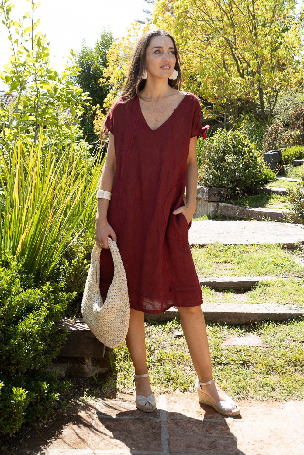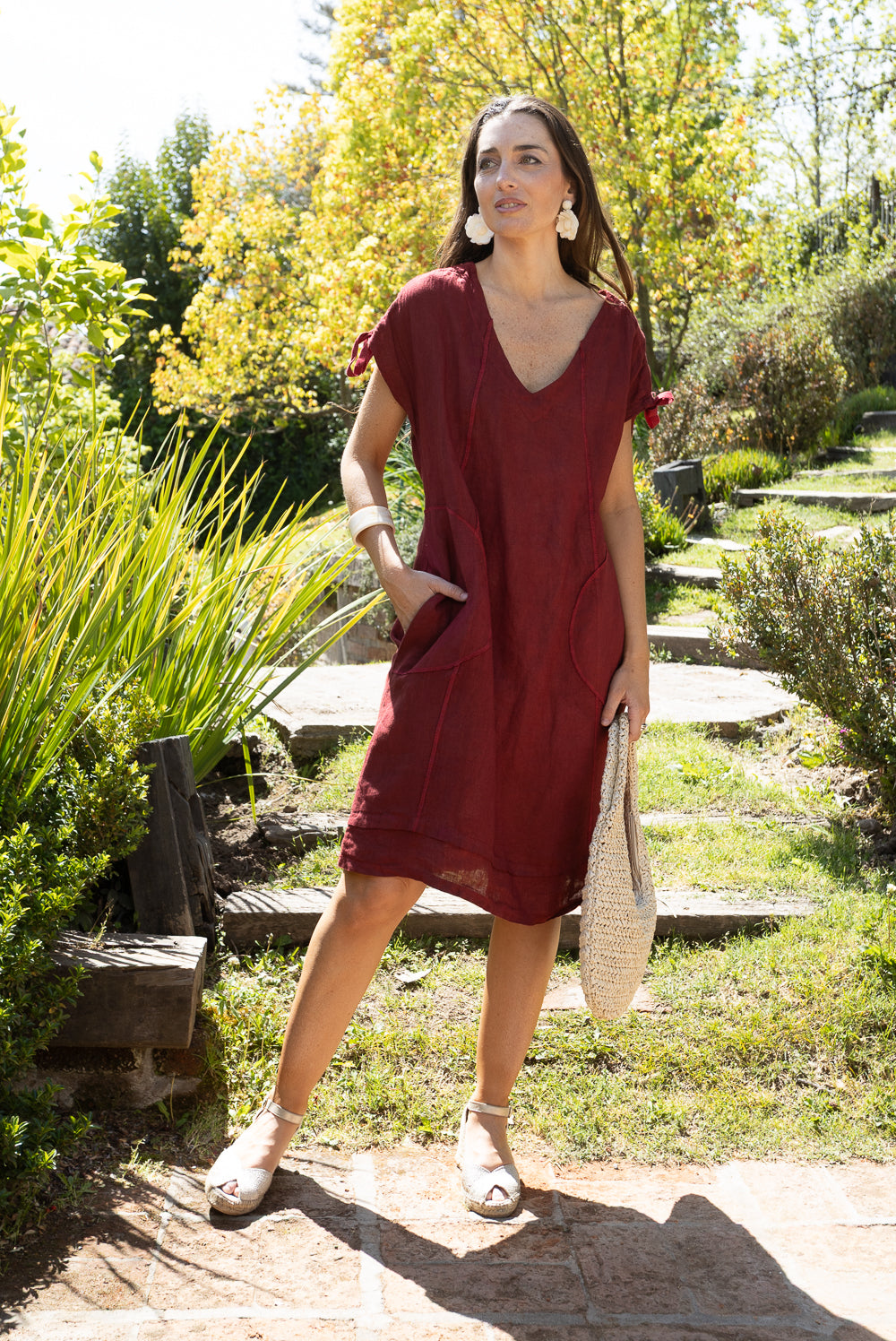 VESTIDO LINO RECOGIDO HOMBRO ESPALDA ITA