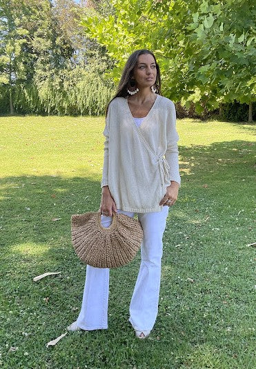 Este TEJIDO CRUZADO AMARRA ITA es un verdadero tesoro de la moda. Su tejido con cierre cruzado te permite ajustarlo a tu gusto y darle un toque único a tu estilo. Disfruta de su elegancia y exclusividad en cada uso. ¡Haz una declaración con esta pieza única!