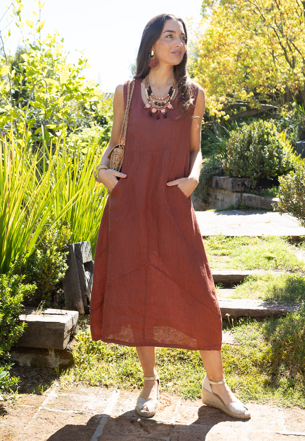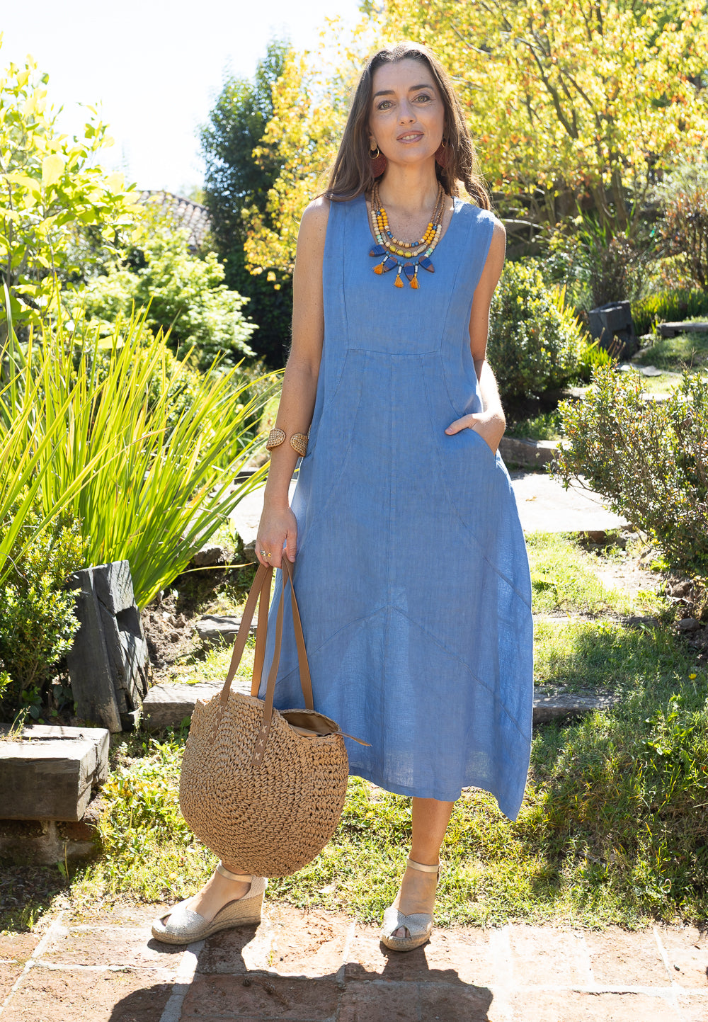 VESTIDO LINO SIN MANGA CORTES ITA