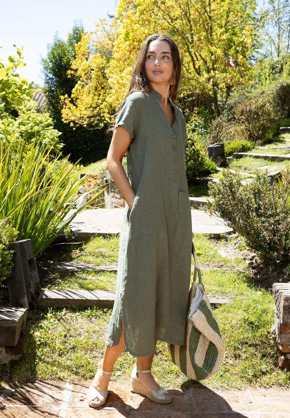 VESTIDO LINO V BOTONES ITA