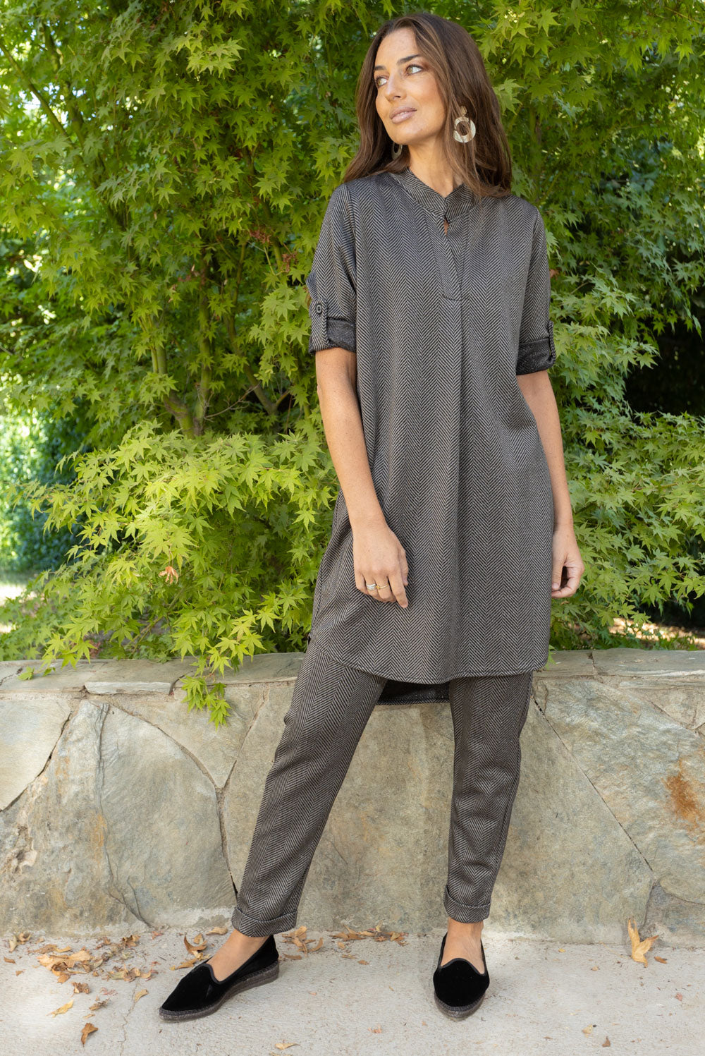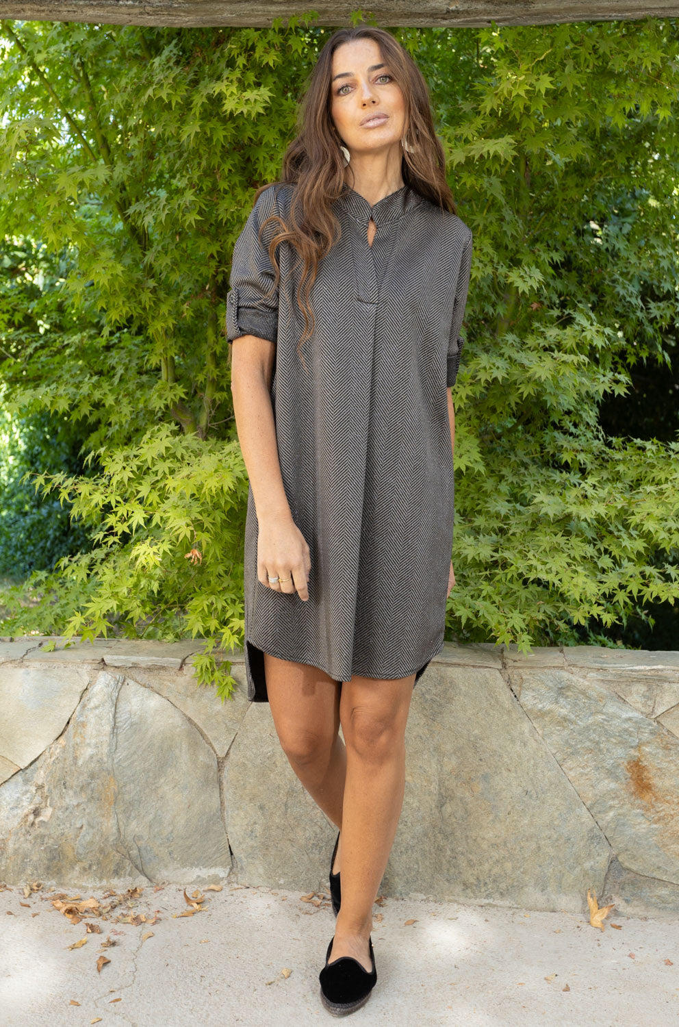 Disfruta de la elegancia y exclusividad con nuestro vestido tipo túnica con detalles de lurex. Perfecto para el invierno, su cuello mao y color negro lo hacen ideal para cualquier ocasión. Añade un toque de brillo y sofisticación a tu guardarropa con este vestido.